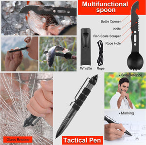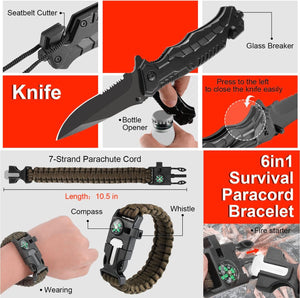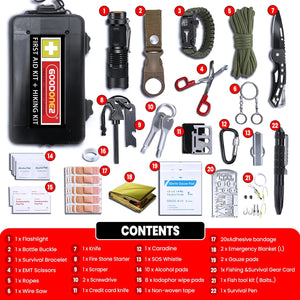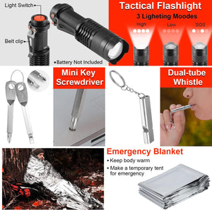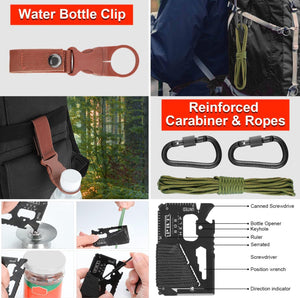 - 【مجموعة أدوات البقاء على قيد الحياة 80 في 1】معدات تكتيكية طارئة 80 في 1 وإمدادات إسعافات أولية للتخييم والمشي لمسافات طويلة والصيد - هدية مثالية لعشاق الأنشطة الخارجية والمغامرين، تتضمن مجموعة البقاء على قيد الحياة هذه أدوات وإمدادات أساسية مطلوبة في حالات الطوارئ